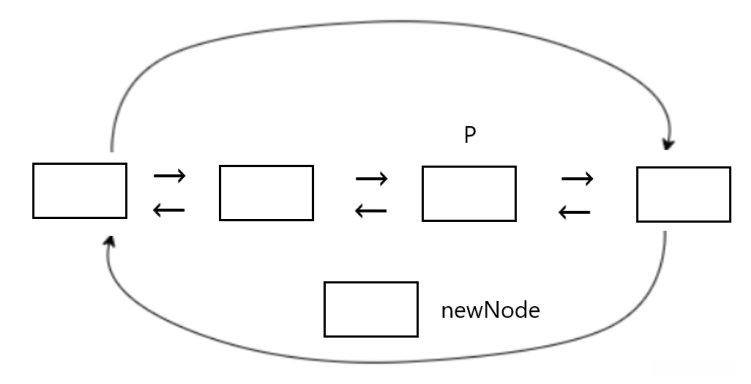 架设已经有一段链表,要在P节点前面插入一个新节点newNode。