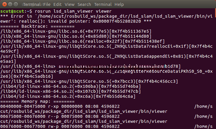 请避免安装这些依赖项中的libqglviewer-dev文件包,在运行LSD-SLAM软件时可能会因realloc(): invalid pointer而导致程序崩溃