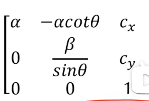 a等于焦距乘以与x方向相关联的像素缩放因子;b等于焦距乘以与y方向相关联的像素缩放因子;o表示在非正交的像素坐标系中旋转的角度;cx和cy分别代表在x轴和y轴方向上的偏移量
