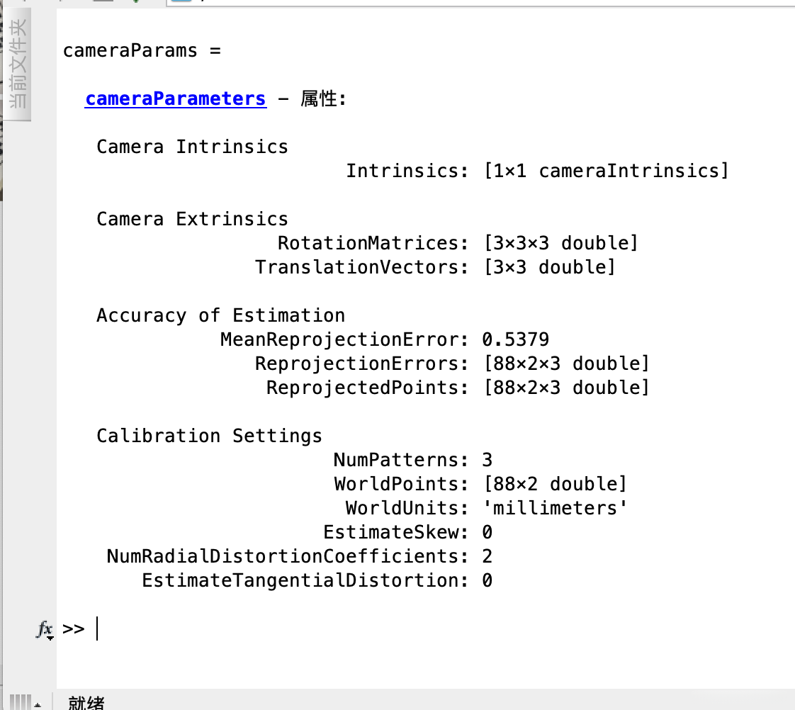 # 输出:标定结果 相机的内参数矩阵 畸变系数 旋转矩阵 平移向量