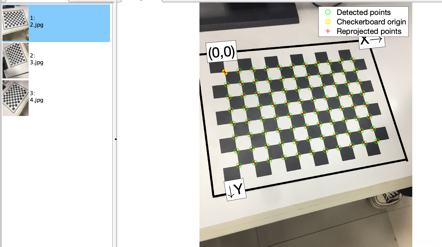 # 然后计算反投影得到的点与图像上检测到的点的误差,最后计算一个对于所有标定图像的平均误差,这个值就是反投影误差。