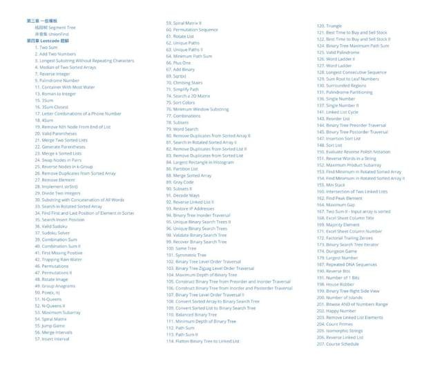 整本书,我仔细看了一遍,作者非常细心地将常见核心算法题和汇总题拆分为4个章节。