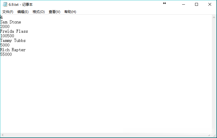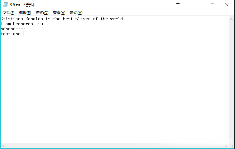 在这里我在程序的目录下提前创建了一个名为“6.8.txt”的文本文件,如下所示: