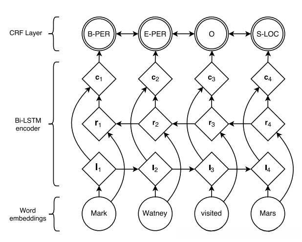 最终是无效的输出“I-Organization I-Person O I-Organization I-Person”。CRF 层通过学习标签的概率转移矩阵,可以向最终的预测标签添加一些约束。