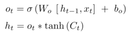 最后,我们需要决定我们要输出什么。 此输出将基于我们的单元格状态,但将是一个过滤版本。 首先,我们一个sigmoid层,它决定了我们要输出的细胞状态的哪些部分。 然后,我们将单元格状态通过tanh(将值规范化到-1和1之间),并将其乘以Sigmoid门的输出,至此我们只输出了我们决定的那些部分