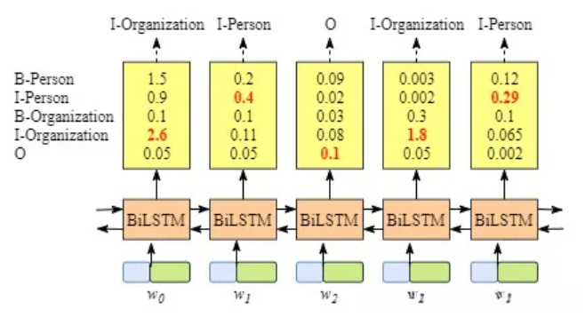 LSTM 层的输出是每个标签的分数,我们可以选择得分最高的标签。