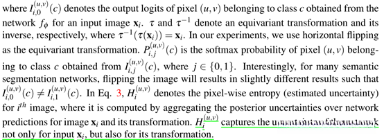 - 除了使用输入图像外,本文还建议使用输入图像的等变变换来提高计算的不确定性。具体来说,在主动学习过程中,从输入图像及其等变变换版本(在本文中,我们使用水平翻转作为等变变换)计算不确定性。