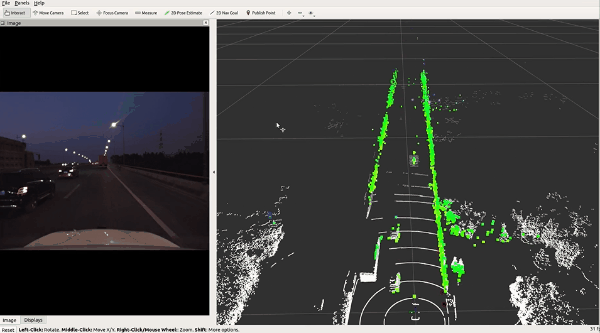 对比图如图所示。白色标记代表激光雷达,绿色标记代表4D毫米波雷达(来源:TJ4DRadSet数据集)。