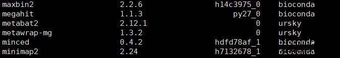 查看安装结果,主要看其中metawrap-mg的版本,这里是1.3.2,来自ursky: