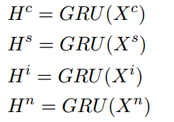 第三步,在本步骤中利用四个独立的GRU结构生成上述四个矩阵的隐藏状态矩阵,并通过以下公式进行计算: