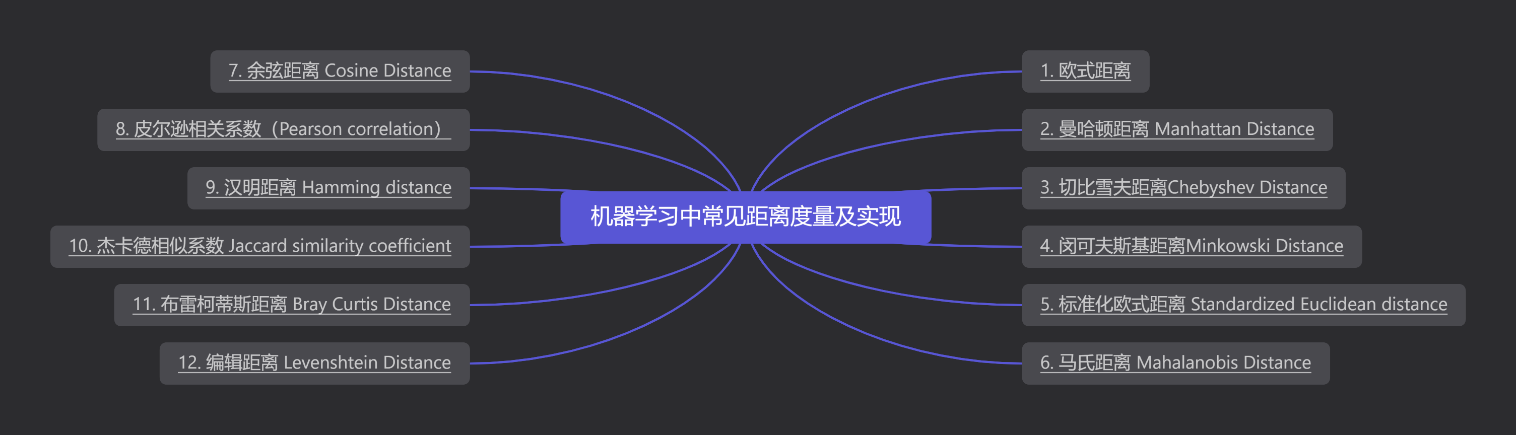 在p取值为1时,这种距离计算方式等同于曼哈顿距离。在p取值为2时,这种距离计算方式等同于欧式距离。当p趋向于无穷大时,这种距离计算方式等同于切比雪夫距离。