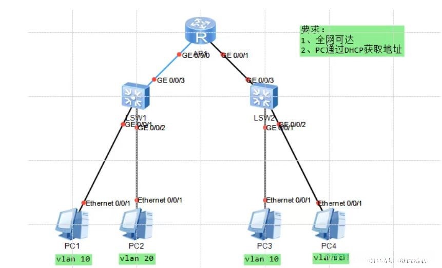 [LSW2-GigabitEthernet0/0/3]port trunk allow-pass vlan 10 20