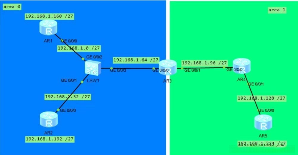 [r5-ospf-1-area-0.0.0.1]network 192.168.1.130 0.0.0.0