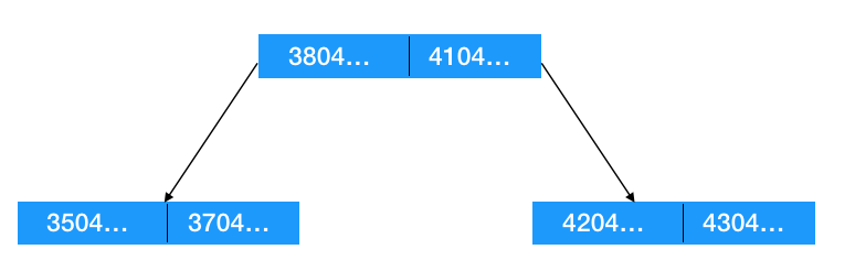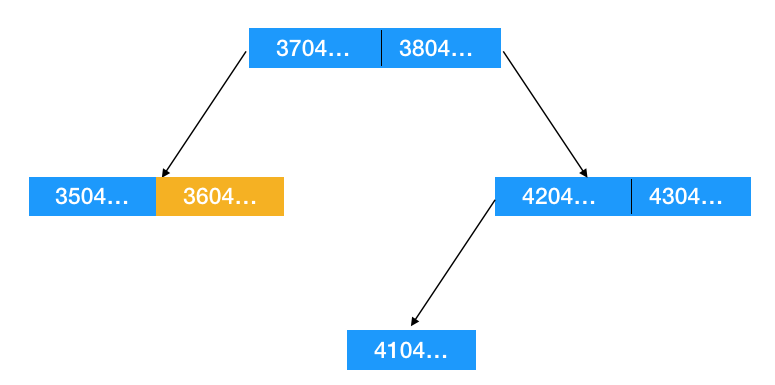 现在有一个开头是 3604 的身份证对应的记录插入 db ,此时要更新索引,按排序来更新的话,显然这个 3604 的身份证号应该插到左边节点 3504 后面(如下图示,假设为二叉树)