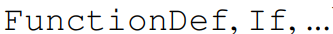 ASDL构造器序列可以创建AST。下图展示了异构图形式的ASDL的AST。所有节点都有一个类型和值,每个非终端节点都是一个构造器,每个终端节点都是一个原生类型的值。构建异构图时,使用构造器名作为节点值或终端token的值,并用他们的复合/原生类型作为节点类型。每个父子关系属于父节点构造器的一个特定field。因此可以把每一个父子的边和ASDL的field名联系起来。在实践中,一些节点只有类型信息没有节点名(当一个符合类型只定义了一个没有名字的单个构造器),把他们的节点值赋值为和节点类型一样。
