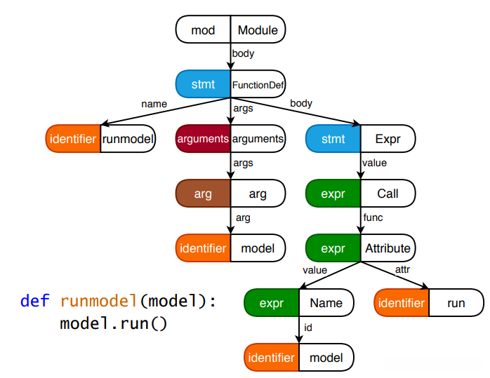 我们的向AST中添加节点和边的类型的想法与异构图的概念是一致的。使用抽象语法描述语言获取AST上的节点和类型信息。