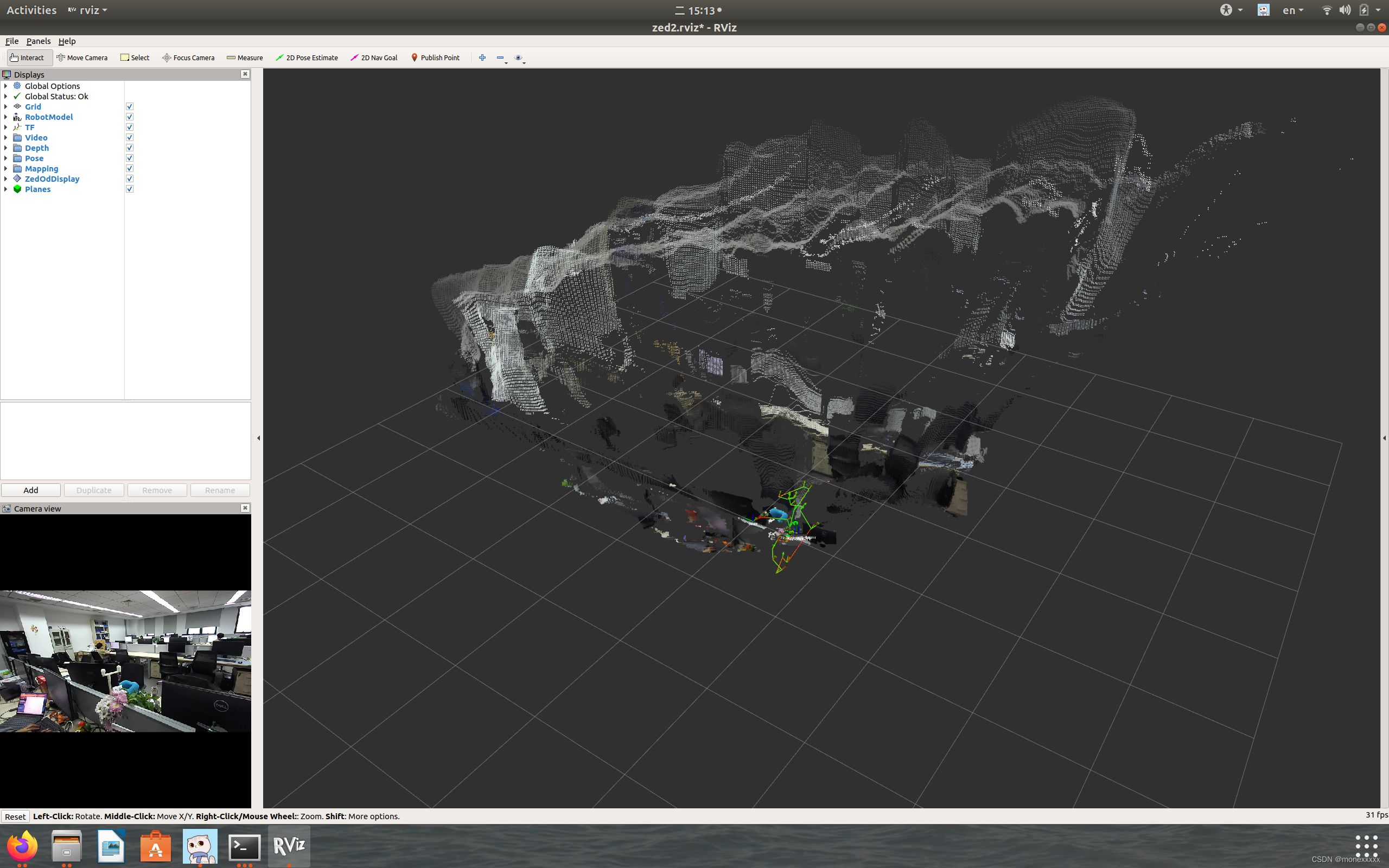 1)roslaunch zed_display_rviz display_zed2.launch