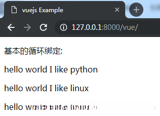 <p v-for = "p in project"> hello world I like {{ p }}</p> <!--关注循环体-->