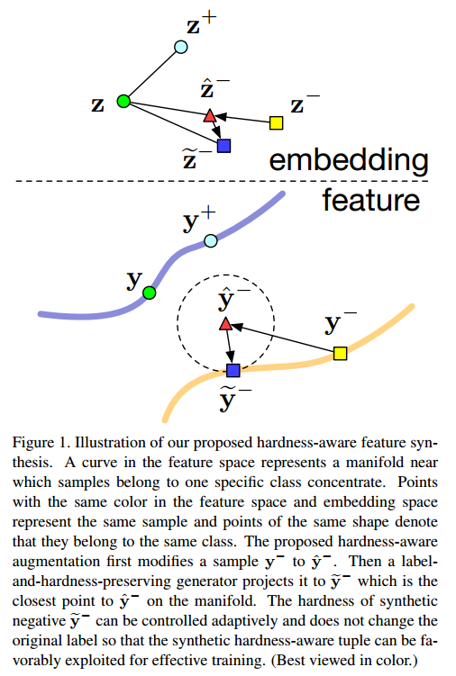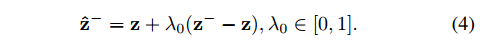 z 为 anchor ,z- 为 negative , 通过线性插值构造增强难度的负样本: