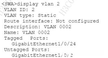 可以看出,在VLAN2中包括了端口G1/0/24,并且数据帧是通过端口以带有标签的形式传输的。