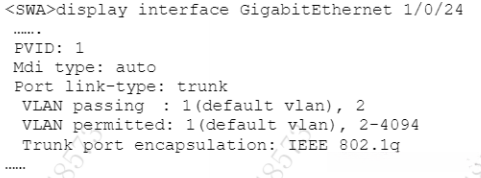 要想让VLAN2数据帧通过端口G1/0/24,需要设置端口Trunk链路端口。