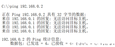 步骤4: 在计算机PC1命令行界面输入ping 192.168.0.2命令检验连通性。