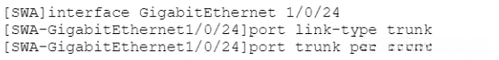 在SWA和SWB上配置端口G1/0/24为Trunk链路端口。