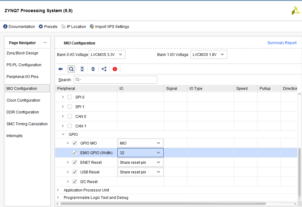 本章将介绍如何通过EMIO和MIO直接控制PMD。与之前采用AXI GPIO的方式不同,在使用PS直接控制GPIO时,在每个设备上都需要单独进行read或write操作。相邻设备之间还存在延时。相比之下,在创建的时候就已经设置了方向属性,并不是像AXI GPIO那样提供统一的方向设置功能,在创建的时候就已经设置了方向属性,并不是像AXI(GPIO)那样提供统一的方向设置功能,在创建的时候就已经设置了方向属性,并不是像AXI(GPIO)那样提供统一的方向设置功能