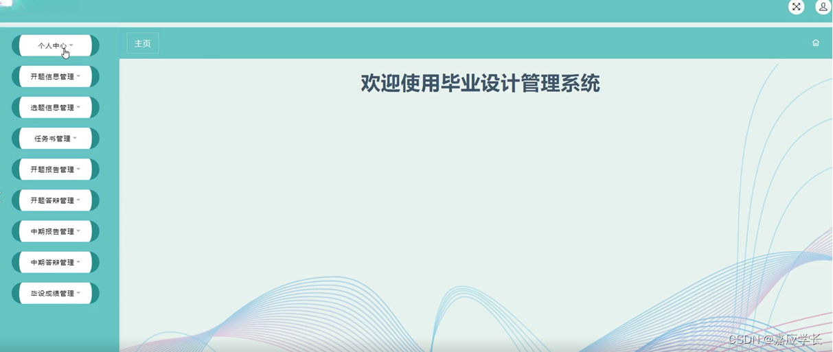 学生登录系统后访问个人中心页面,在线浏览或查询个人资料;同时可对开题信息(包括题目来源与研究方向)进行录入或查询;针对选题阶段可完成选题信息的录入或筛选;针对任务阶段可完成任务书撰写与提交;针对论文阶段可提交开题报告并安排答辩时间;针对中期评估阶段可完成中期报告撰写与提交;最后在毕设阶段需输入最终成绩并提交最终文档