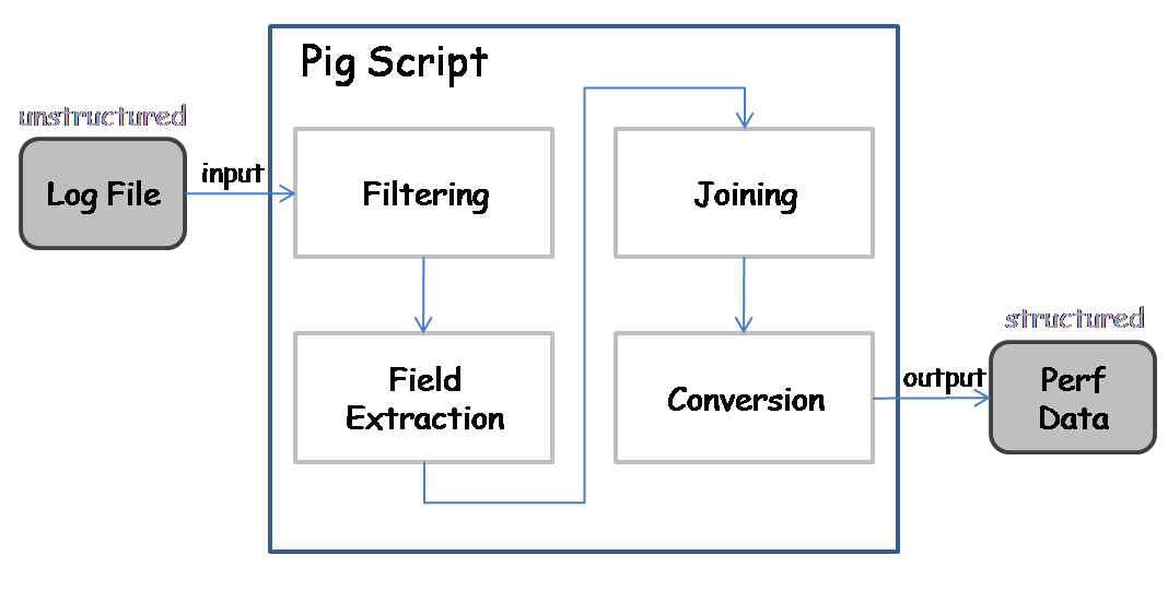 Pig is frequently employed to establish data processing pipelines on Hadoop systems. As depicted in Figure 2.4, a Pig script has been developed with the objective of conducting four distinct processing stages: