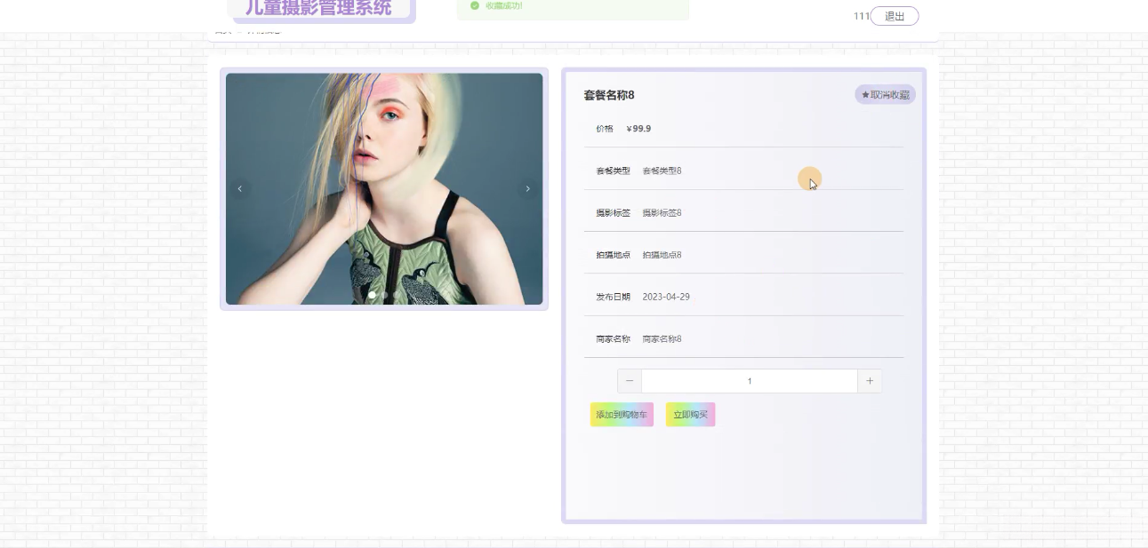 随着社会对儿童成长的日益关注及家庭消费结构的升级,儿童摄影已成为记录孩子成长瞬间、留存珍贵记忆的重要方式。然而,传统的儿童摄影服务模式在订单管理、套餐选择、作品展示及售后服务等方面存在效率低下、信息不透明等问题。随着信息技术的飞速发展,尤其是互联网和大数据技术的广泛应用,构建一套高效、便捷、用户友好的儿童摄影管理系统显得尤为重要。该系统旨在通过数字化手段优化摄影服务流程,提升顾客体验,同时为商家提供智能化管理工具,促进儿童摄影行业的转型升级。
