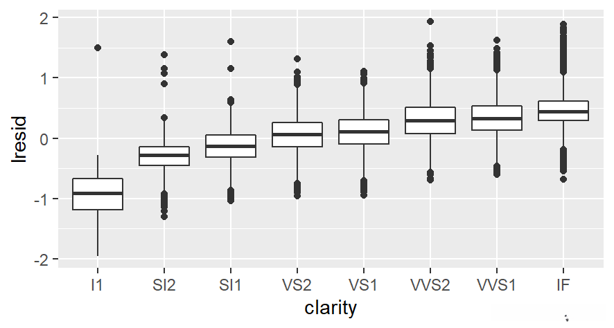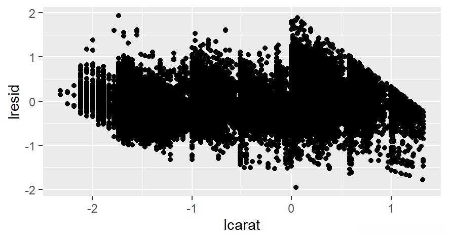 > diamonds2<-diamonds2%>%add_residuals(mod_diamonds,"lresid")