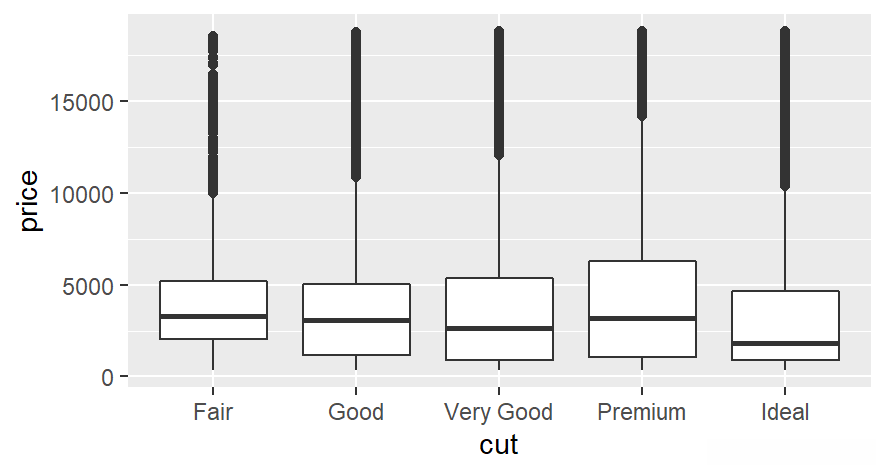 > ggplot(diamonds,aes(cut,price))+geom_boxplot()