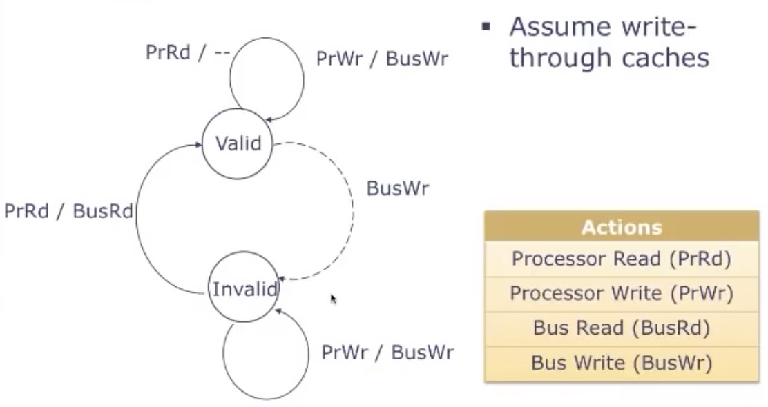 - I - cache doesn't contain the address “失效”状态表示该数据块是否已有最新值(失效说明数据块已经被其他processor修改)