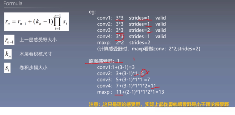 之前的竞赛模型:11×11strides4 ,7×7strides2,VGG模型filters 3×3 strides1.很容易看到两个3×3卷积层堆叠(没有空间池化)有5×5的有效感受野;三个3×3卷积层堆叠具有7×7的有效感受野。意义呢? 如下: