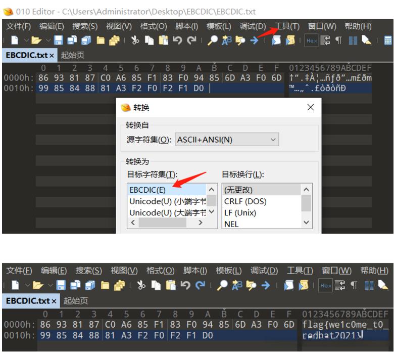 文件名已经告知采用的是EBCDIC编码。EBCSIC(基于广义二进制的十进制交换码)是一种用于表示字母和数字字符的二进制编码方案,在IBM为其更大规模的操作系统开发并推广这一技术基础