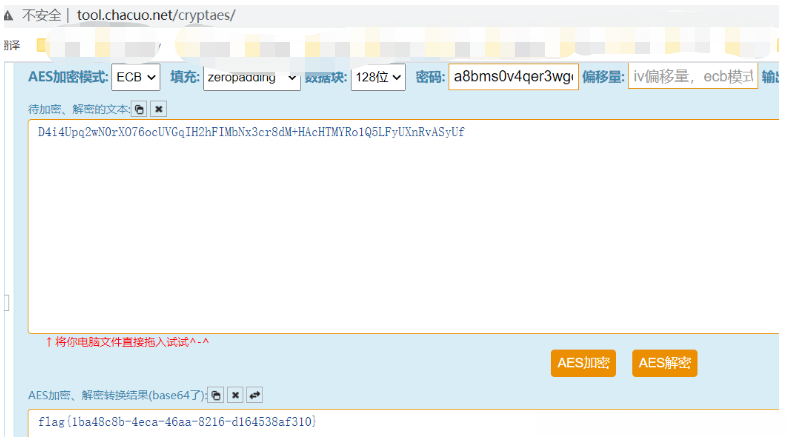 最后在使用在线ASE解密输入密文和密钥,解密拿到flag。