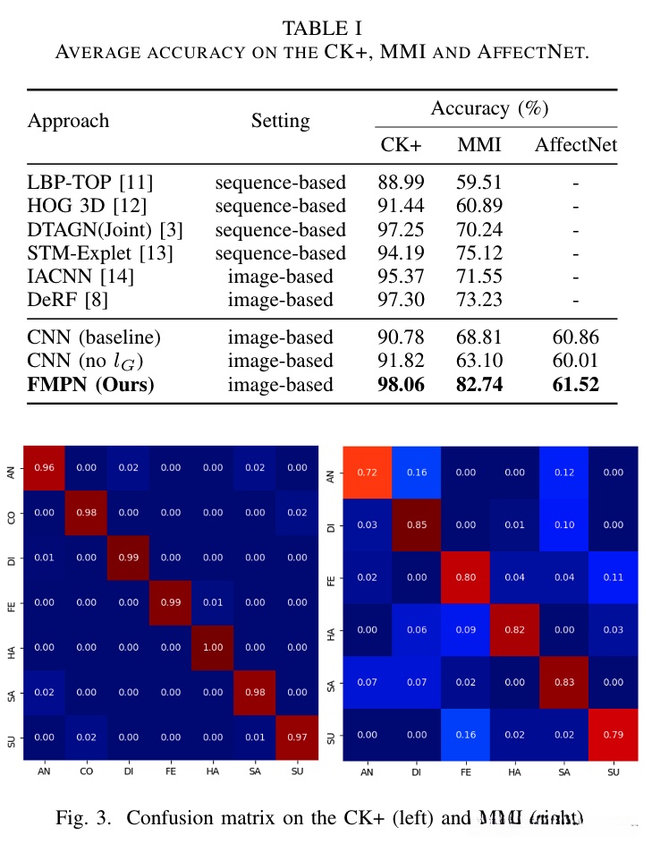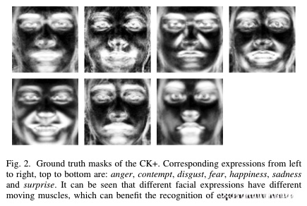 有些人可能会好奇为何我们不直接使用computed-ground truth掩码进行面部表情识别,而要学习生成 facial motion masks。主要原因之一是,在测试过程中,我们不确定应该选择哪种类型的 ground truth 表情掩码——因为每个表情都具有独特的面部运动特征。此外值得强调的是,在实际应用中发现:由于不同数据集中的同一类表情通常表现出类似的面部运动模式,因此从一个数据集获取的真实 motion masks很可能能够适应另一个数据集的需求。这种特性有助于解决某些数据集可能缺乏成对的真实样例和中性样本以计算基础真实掩码的问题。