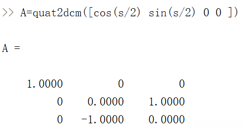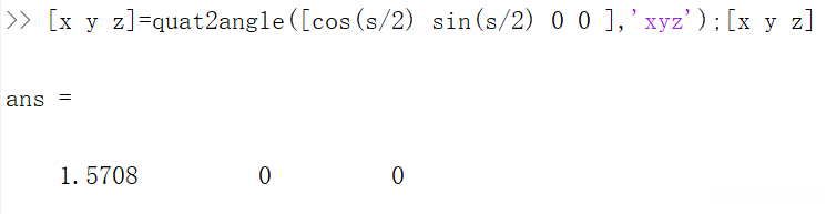 同样的此时对应四元数为q=[ cos(pi/2) sin(pi/2) 0 0 ],第一个为实部