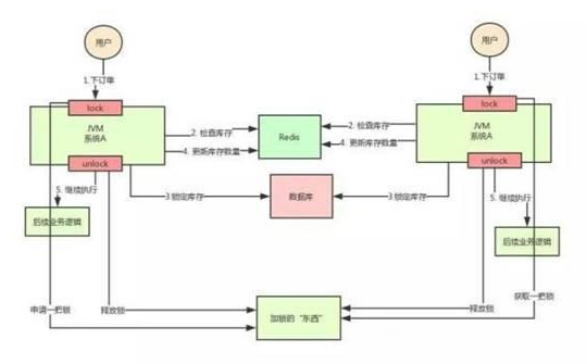因此,这里的问题是:Java 提供的原生锁机制在多机部署场景下失效了,这是因为两台机器加的锁不是同一个锁(两个锁在不同的 JVM 里面)。