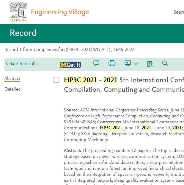 HP3C 2021-2017会议论文集均已由ACM出版为会议论文集,在ACM Digital Library中上线,并已被EI核心,Scopus检索,会议出版检索稳定。