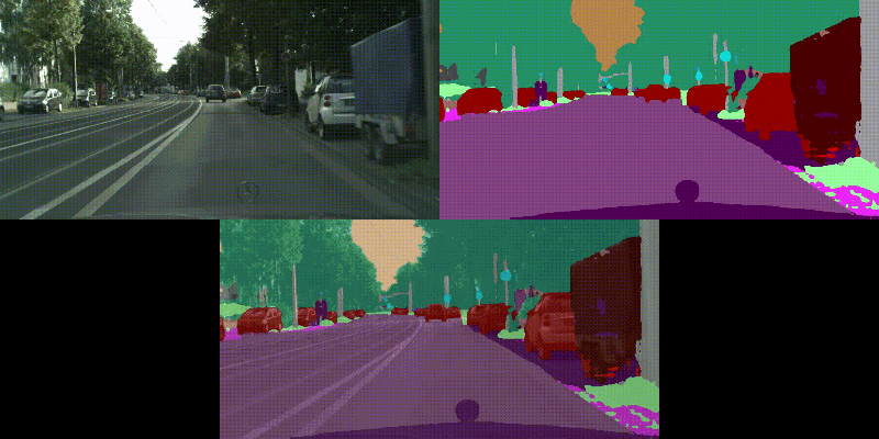 至此已经实现了通过从视频或图像中分割出道路交通标志以及车辆等元素并识别出所处的环境情况从而为自动驾驶系统提供技术支持