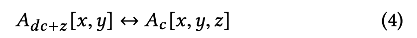 到目前为止为止,我们已经将我们的模型被建模为一个神经网络.换一个角度看待它,从双网格结构的角度进行分析.为了便于理解,我们略微进行了符号上的简化处理,即将最终输出的特征图A暂时视为一个多通道双网格的形式,其中第三维已经被展开了: