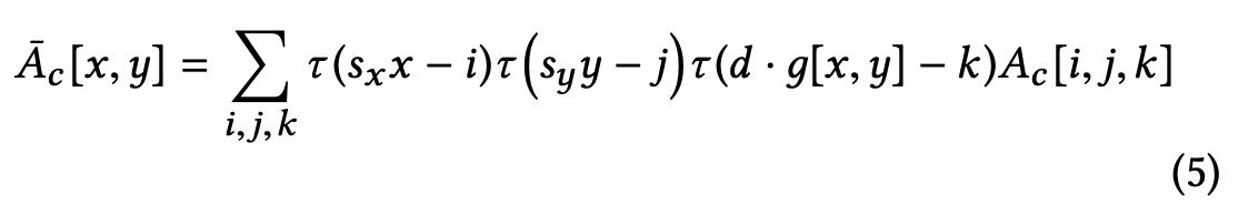 该切片操作生成的新特征图A_具有与g相同的分辨率,在g所定义位置处执行三线性插值计算A的系数