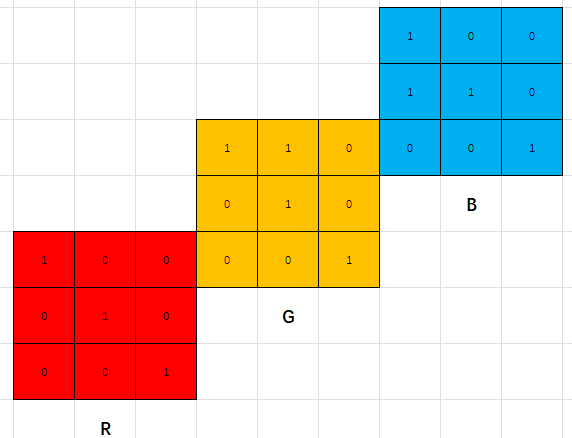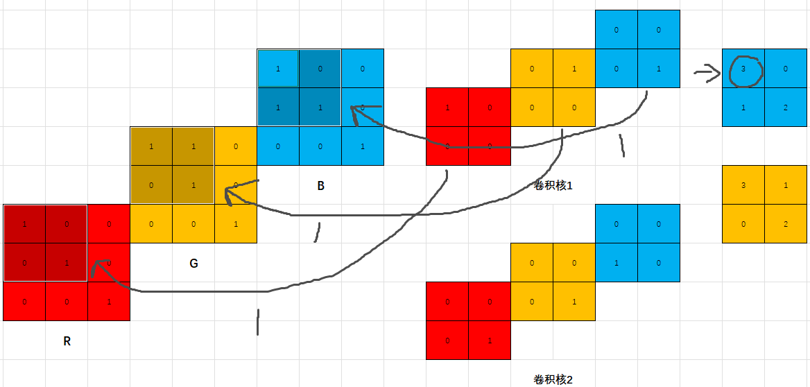 输入几维图像就会对应有几个分量,卷积核深度=分量个数,如下所示: