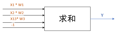 计算公式为:Y = f(X1W1+X2W2+X3*W3-1)