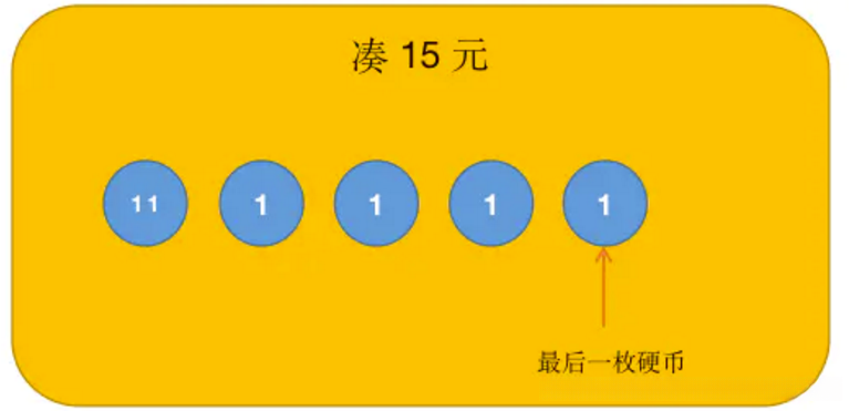 如果用 {5,5,5} 来凑15,最后一个硬币就是5,我们按照这个思路捋一捋,: