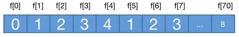 查看下图后可知,在计算f\left(\text{70}\right)时只需关注前三个数值f\left(\text{59}\right)、f\left(\text{69}\right)和f\left(\text{65}\right)通过应用特定公式即可得到结果;而f\left(\text{0}\right)f\left(\text{1}\right)\dotsbf\left(\text{58}\right)等值完全没有意义因此无需存储这些值以节省内存空间;从而为我们提供了优化算法的空间