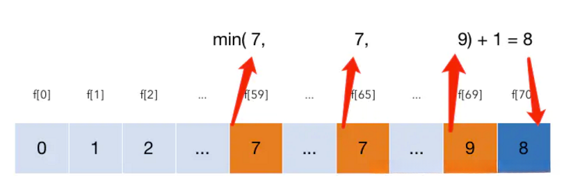 dp[i]=Math.min(dp[i],dp[i-coin]+1);