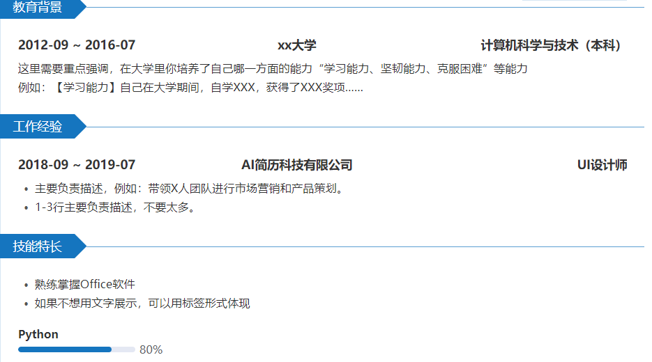 无论是项目经历中提到的相关技术和专长,还是技能特长中的相关内容,在简历出现时都必须深入理解;如果没有掌握相关知识,在面试前需深入学习。